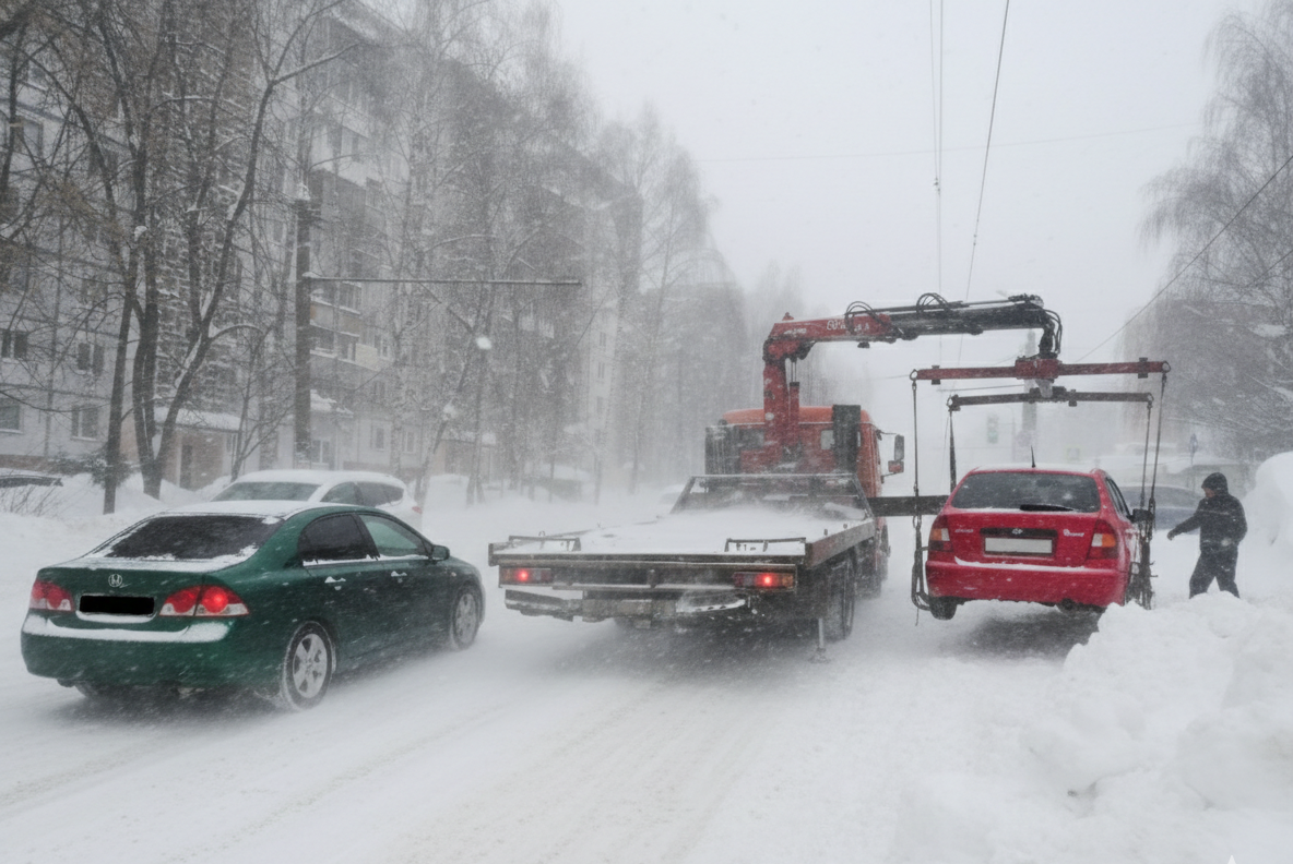 Зима 2026 года — непростая для автовладельцев Владимира. Серия обильных снегопадов и крещенские морозы до −20 °C резко осложнили дорожную обстановку. По данным городских служб, с улиц уже вывезено около 100 тысяч кубометров снега, однако во дворах, спальных районах и историческом центре по-прежнему остаются плотные сугробы высотой до 50 см. В таких условиях эвакуация во Владимире становится реальной необходимостью, и усугубляется морозами.